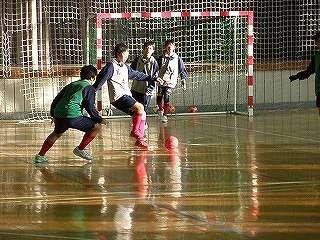 11月17日(水)、学校に出勤すると体育館から元気のいい声が聞こえました。「3年生が練習をしている」と思って、中を覗くと、1,2年生の「フットサル」の練習中でした。今3年生が練習している「フットサルの東北大会」の予選会が始まるとのことで、1,2年生が練習に取り組んでいるとのことです。頑張れ!サッカー部の1,2年生