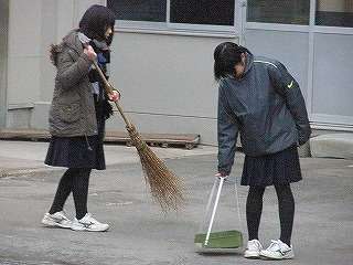 いつもより早く出勤(7時05分)したのですが、吹奏楽部さんがほうきに雪払いをしていました。凍っているので、何ともなりませんが、掃除の活動をしているのがすばらしいです。その後、朝練習に向かいました。