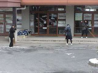 今日も雪払い☆吹奏楽部さんが朝の掃除(その1)