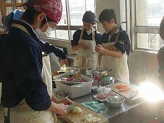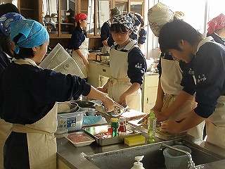 12月16日(木)の1,2校時、調理室前の廊下を通過すると「いい匂い」がしてきました。私の授業がありませんので、カメラを持って調理室にお邪魔しました。今度は2年5組さんが「スパゲッティミートソース」の調理実習をしていました。試食までさせていただきました。今回は調理しているところは撮影できませんでしたが、試食しているところを撮影させていただきました。