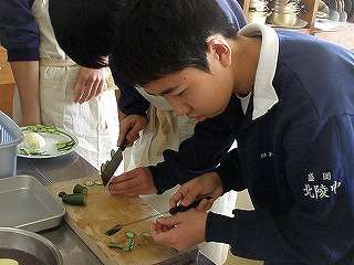 2年2組が調理実習☆キュウリの切り方、リンゴの皮むき(その6)
