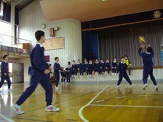 12月2日(木)1年生が1,2校時は校舎内の清掃とワックス塗り、3校時からは「クラスマッチ」で汗を流しました。この日は2年生が修学旅行中でいません。ということで、奉仕活動に取り組みました。