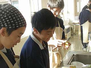 廊下にいい匂い「スパゲッティミートソース」作り☆2年2組が調理実習(その8)