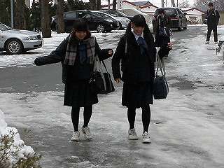 ※12月20日(月)の朝、登校の様子です。滑るから「気をつけて」