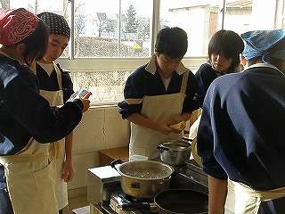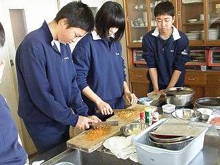 ※12月16日(木)2年2組の調理実習の様子です。「スパゲッティミートソース」の調理実習の様子です。