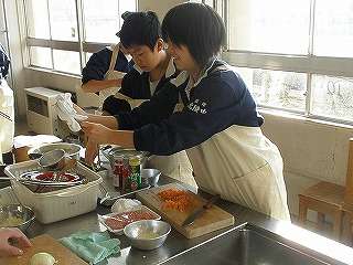 廊下にいい匂い「スパゲッティミートソース」作り☆2年2組が調理実習(その3)