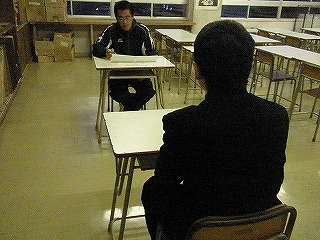 12月14日(火)の放課後、企画委員の先生方での面接練習が始まりました。担任の先生や学年の先生方の入退室の面接練習はひとまず終了したのですが、今回は「志望動機」など踏み入った面接練習となっています。「自己アピールカード」完成していますか?