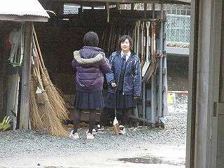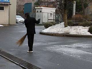 12月24日(金)今日は終業式。毎日、「今日は雪かきをしますか?」と聞きに来る「3年生の雪かきボランティア隊」。私達(というより、多くの人には雪がないことはいいことなのですが?)7組の「松平くん」と「桃子さん」を隊長を中心に、少しの雪を払いました。毎日朝早く登校しています。そういう事に頑張れる人が本当のボランティアの活動なのでしょう。)「雪かき」が必要なのかどうなのかは、一人一人の判断になります。3学期は本格的に活動になります。よろしくお願いします。