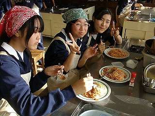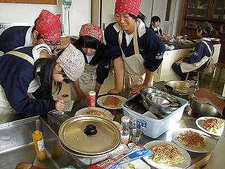 今日は終業式ですが、廊下にいい匂い「スパゲッティミートソース」作り☆2年3組が調理実習(その2)