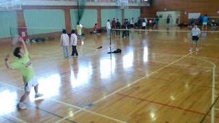 東北中学校バドミントン選手権大会、交流試合の様子です。