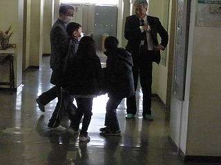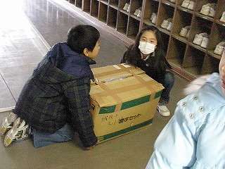 12月16日(木)の昼、城北小学校の生徒さんと先生2人が北陵中学校へ段ボール箱1箱にぎっしりとペットボトルキャップを詰めて、持ってきてくれました。なんとかわいい小学生でしょうか?