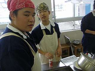 12月22日(水)の1、2校時、調理室前の廊下を通過すると「いい匂い」がしてきました。今日は2年1組さんが「スパゲッティミートソース」の調理実習をしていました。2校時は授業がありましたので、試食の様子を撮影することができませんでした。今回は調理しているところはしか撮影できませんでした。
