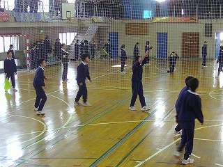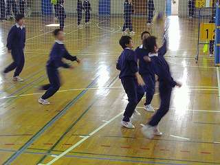 12月2日(木)1年生が1,2校時は校舎内の清掃とワックス塗り、3校時からは「クラスマッチ」で汗を流しました。この日は2年生が修学旅行中でいません。ということで、奉仕活動に取り組みました。