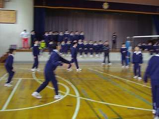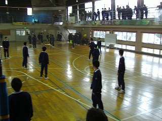12月2日(木)1年生が1,2校時は校舎内の清掃とワックス塗り、3校時からは「クラスマッチ」で汗を流しました。この日は2年生が修学旅行中でいません。ということで、奉仕活動に取り組みました。