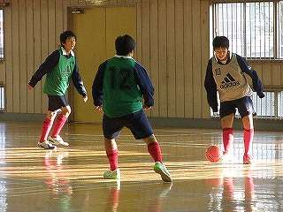 11月17日(水)、学校に出勤すると体育館から元気のいい声が聞こえました。「3年生が練習をしている」と思って、中を覗くと、1,2年生の「フットサル」の練習中でした。今3年生が練習している「フットサルの東北大会」の予選会が始まるとのことで、1,2年生が練習に取り組んでいるとのことです。頑張れ!サッカー部の1,2年生