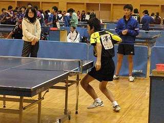 ※12月18日(土)盛岡体育館で行われた「第27回盛岡市近郊卓球大会」で決勝トーナメント2回戦、「姥屋敷・東部中の連合チーム(県新人大会出場校)」との試合の様子です。