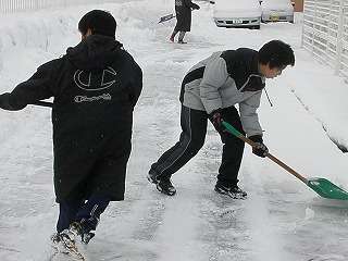※1月9日(日)土淵活動センター付近の雪かきをする男子卓球部です。