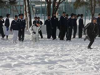 3連休後、今季一番の冷え込み(−10度)でしたが、校庭での部活動をしている野球部は「ダッシュ」の練習中でした。