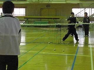 3連休後、今季一番の冷え込み(−10度)でしたが、体育館で部活動をしている男子テニス部は「乱打」の練習中でした。体育館は校庭よりも寒いこと、寒いこと。