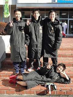 女子は、62チームが参加し、北陵中は戸埜村、杉原、小山田、小山の4選手で走り、41分03秒で21位でした。女子4区を走った小山瑠菜さんはみごと区間賞を獲得しました。走り終わった選手たちは、4月の市内一周継走に向けて、「みんなそろって練習を積み重ねる」を目標に、また今回後塵を拝した市内の他の学校に追いつけるように、雪に負けずに頑張ります。