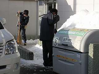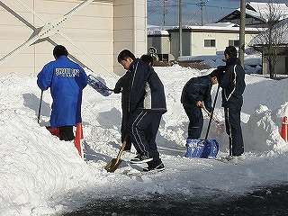 ※1月13日(木)青山活動センター付近の雪かきをする男子卓球部です。