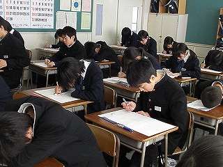 1月14日(金)の始業式のあと、3年生は実力テストが行われました。明日から中央高校はじめ私立高校の入学試験が始まりますので、緊張感あるテストへ向かいました。