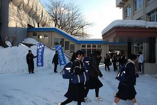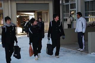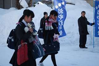 1月14日(金)、今日から42日の3学期がスタートしました。今朝の最低気温はマイナス11度、登校時もまだ冷え込んでいましたが、生徒は元気に登校していました。また学期の始まりなのでおやじの会、PTAの皆さんのあいさつ運動が行われました。みなさんから生徒に声をかけていただきました。
