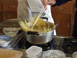 廊下にいい匂い「スパゲッティミートソース」作り☆2年2組が調理実習(その8)