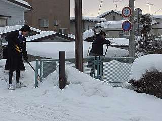 ※1月17日(月)雪かきをする3年生の「雪かきボランティア隊」の様子です。