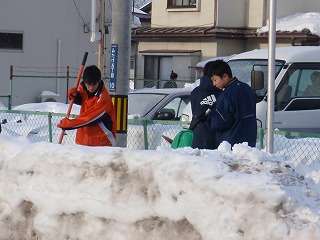 1月22日(土)この日は「白い恋人隊」の出動日でした。3年生は自由参加でしたが、1,2年生は全員参加で地域の雪かきをする活動日でした。しかし、雪かきではなく「氷割り?」の活動になりました。年末年始に大雪となって以来、雪が降らず助かっていますが、今日の活動では雪かきができませんでした。地域の方々やPTAの協力の下活動することができました。