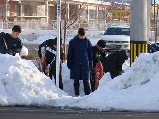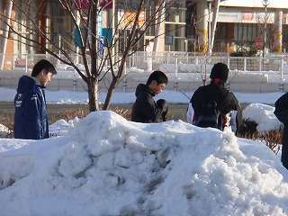 ※1月23日(日)土淵地区活動センターで上田中学校と練習試合を行います。しかしその前に、道路の雪払いをしました。