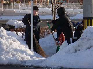 上田中との練習試合前、まずは雪払いから☆