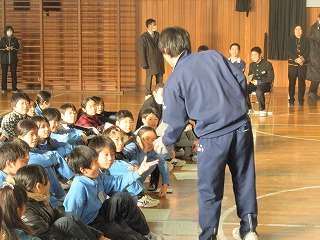 ※2月7日小学校訪問で発表している水泳部の様子です。