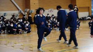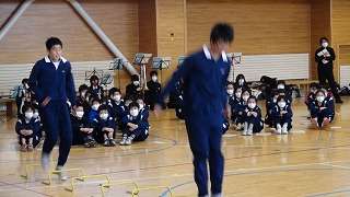 ※2月7日 小学校訪問で発表している陸上部の様子です。