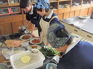 ※2月14日(月)、2年6組の調理実習の様子です。