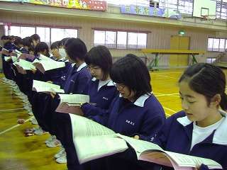 卒業式に向けて1・2年合同で練習しました☆1・2年合同合唱練習