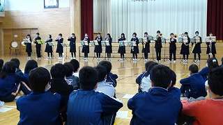 ※2月7日小学校訪問で発表している吹奏楽部の様子です。