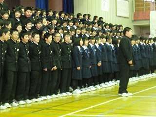 2月25日(金)の5,6校時、「3年生を送る会」が行われました。今期の生徒会が初めて自分たちで取り組む行事です。さらに昨年度は「新型インフルエンザ」のため、12月に「3年生を励ます会」で実施し、2年ぶりの「3年生を送る会」でした。この日のために、1,2年生が練習を積んできた合唱や、女子バスケ部と新体操部のパフォーマンス、男子バスケ部恒例の「一気飲み」芸、吹奏楽部のすてきな演奏を披露してくれました。厳しい時間を過ごしている3年生にとっては一時の楽しい時間を過ごしました。
