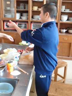 3年5組が調理実習☆お好み焼きとフルーツヨーグルト作りで、和気藹々(その6)
