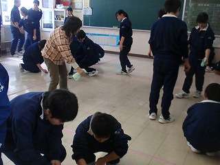 3月4日(金)の5校時、全校で1年間使った教室の床磨きを行いました。教室の床磨きは1年ぶりです。1,2年生はワックスがけを行いましたが、3年生は9日(水)に教室のワックスがけを行います。!