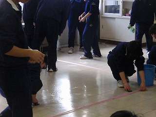 ※3月4日(金)3年生の教室の床磨きの様子です。
