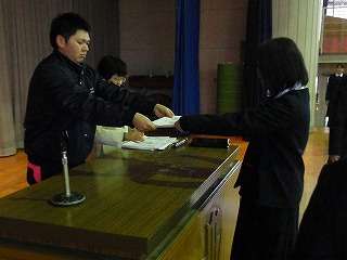 ※3月4日(金)卒業式の証書授与練習をする3年生です。
