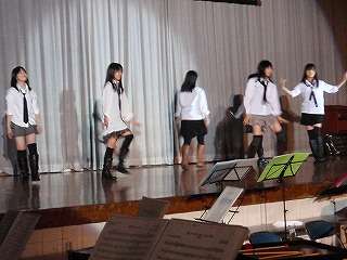 2月25日(金)の5,6校時、「3年生を送る会」が行われました。今期の生徒会が初めて自分たちで取り組む行事です。さらに昨年度は「新型インフルエンザ」のため、12月に「3年生を励ます会」で実施し、2年ぶりの「3年生を送る会」でした。この日のために、1,2年生が練習を積んできた合唱や、女子バスケ部と新体操部のパフォーマンス、男子バスケ部恒例の「一気飲み」芸、吹奏楽部のすてきな演奏を披露してくれました。厳しい時間を過ごしている3年生にとっては一時の楽しい時間を過ごしました。