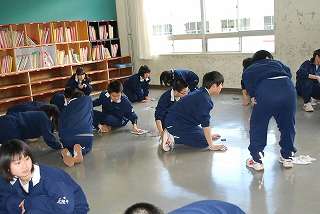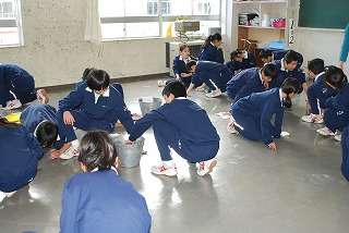 1年間お世話になった教室の床を生徒一人一人がみがきました。