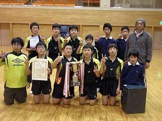 今年度盛岡体育館で行われた大会(5月の市民体、6月の市中総体、8月の市会長杯、9月の市中新人大会、そして12月の盛岡市近郊卓球大会)すべてで優勝することができました。22年は「北陵中男子卓球部の花が咲いた年」でした。来年も頑張ります。目標は、8月水沢市総合体育館で行われる「東北大会」へ出場することです。