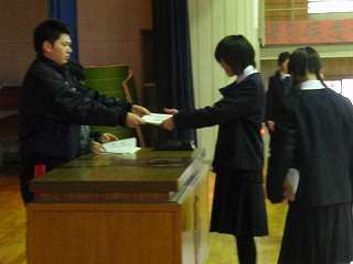 ※3月7日(月)の5校時、卒業式の証書授与練習をする3年生です。!