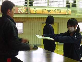 3月7日(月)の5校時、3年生は卒業証書授与の練習を行いました。体育の時間には練習をしてきましたが、全体の通し練習と部分練習を行いました。いよいよ明後日が公立高校の学力検査の日で、13日(日)が卒業式です。いよいよ3年生にとって最後の学校生活となります。