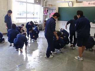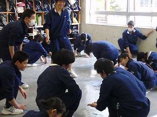 3月4日(金)の5校時、全校で1年間使った教室の床磨きを行いました。教室の床磨きは1年ぶりです。1,2年生はワックスがけを行いましたが、3年生は9日(水)に教室のワックスがけを行います。