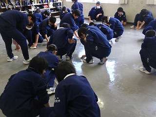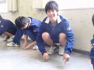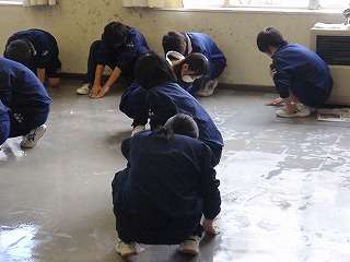 3月4日(金)の5校時、全校で1年間使った教室の床磨きを行いました。教室の床磨きは1年ぶりです。1,2年生はワックスがけを行いましたが、3年生は9日(水)に教室のワックスがけを行います。