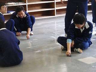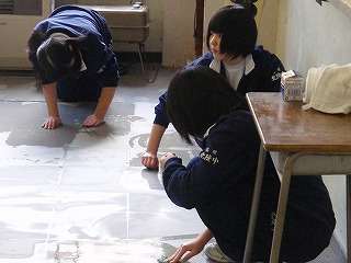 3月4日(金)の5校時、全校で1年間使った教室の床磨きを行いました。教室の床磨きは1年ぶりです。1,2年生はワックスがけを行いましたが、3年生は9日(水)に教室のワックスがけを行います。